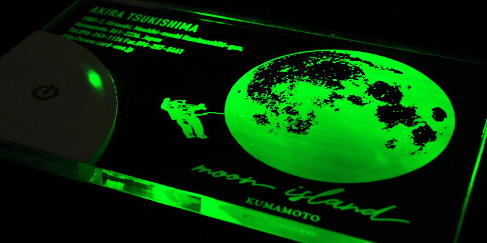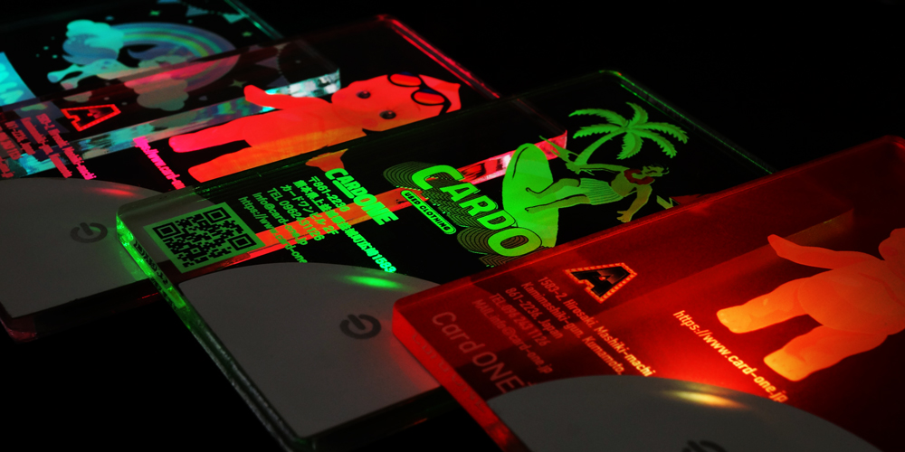 色とりどりの光を放ち存在感は抜群で、名刺として以外にもアイデア次第で使い方は無限大です。