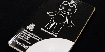 厚さ4mmのアクリル板にLEDが内蔵され、7色に光り輝くLEDアクリル名刺。白1色、またはフルカラー+白印刷が選択可能です。