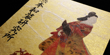 和紙の下にきらりと輝く、雲竜シャインペーパーの名刺。