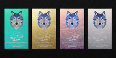 メタルペーパーやホログラムペーパーに薄い和紙を合紙した上品でおしゃれなカードワンオリジナル用紙、雲竜シャインペーパー。カラーバリエーションも豊富にラインナップ。高級感あふれる和風の名刺にピッタリな用紙です。 雲竜シャインペーパー195kg 偏光ブルーグリーン・雲竜シャインペーパー195kg 偏光オレンジグリーンの裏面は黒い上質紙となります。(オプション:裏面印刷追加/スミ(デジタルオフセット印刷)・裏面印刷追加/カラー(デジタルオフセット印刷)は不可となります。)